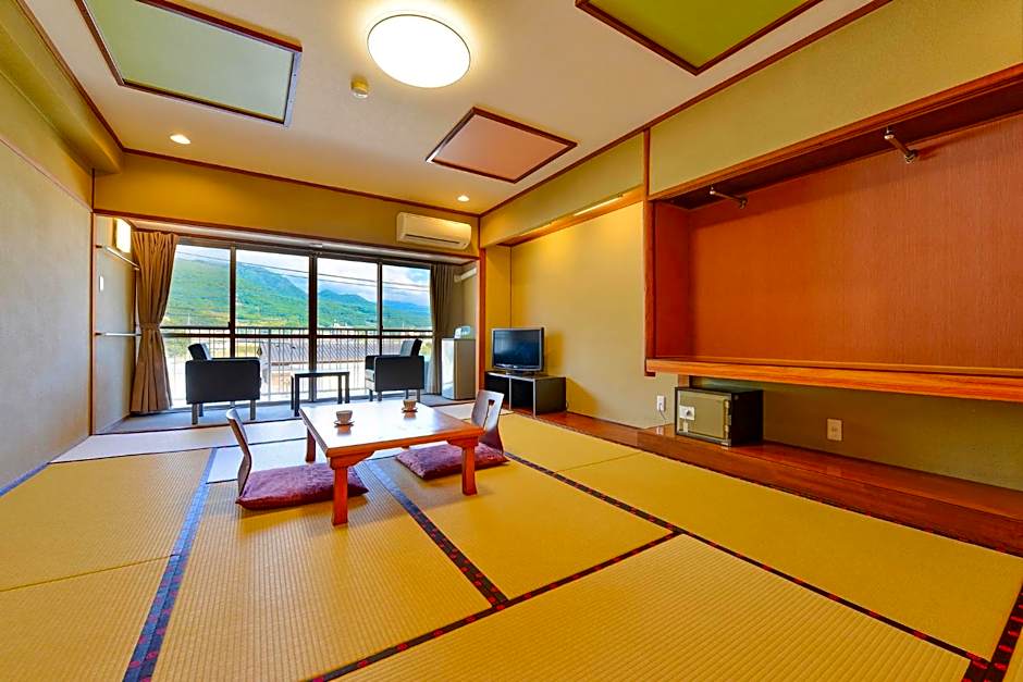 The family room provides air conditioning and a safe deposit box, as well as a shared bathroom featuring slippers. The unit offers 4 futons.