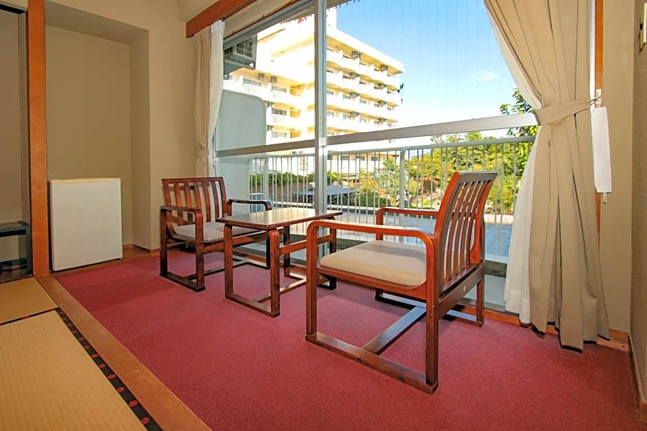 The family room provides air conditioning and a safe deposit box, as well as a shared bathroom featuring slippers. The unit offers 4 futons.